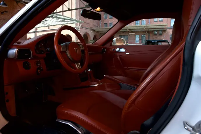 Der Carrera 4S verbindet die Leistung des S-Motors mit dem sicheren Allradantrieb und der breiteren Karosserie des Turbo. Dieses Exemplar zeigt sich in Weiß mit terrakottafarbener Lederausstattung - eine seltene, stilvolle Kombination, die Eleganz und Sportlichkeit perfekt vereint.